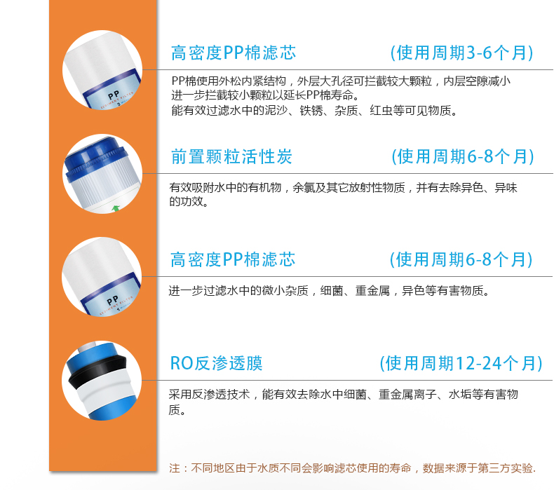 pp棉+颗粒活性碳+pp棉+反渗透ro膜