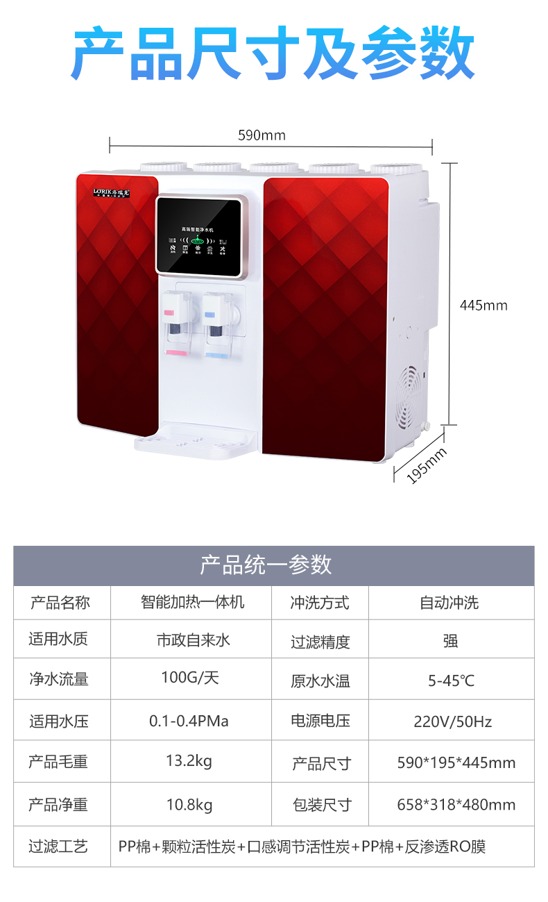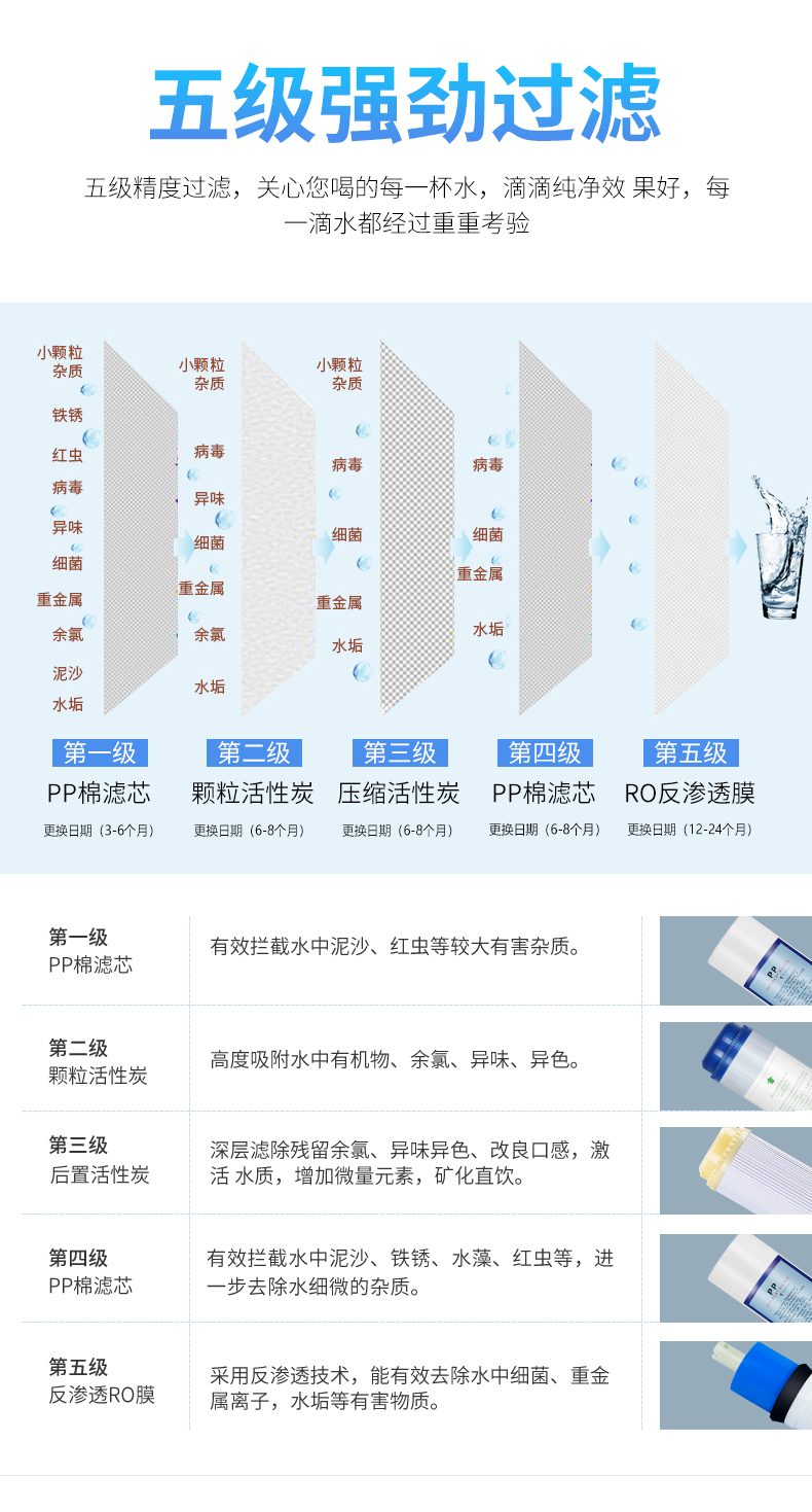 pp棉+颗粒活性碳+口感调节活性炭+pp棉+反渗透ro膜