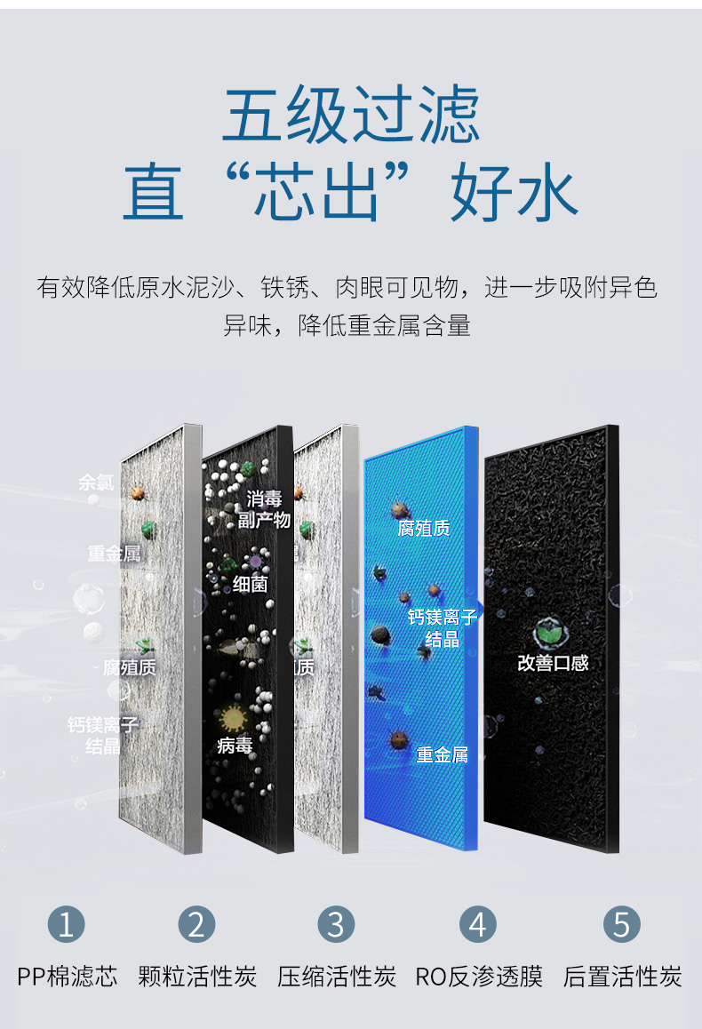 pp棉+颗粒活性碳+后置活性炭+压缩活性炭+反渗透ro膜