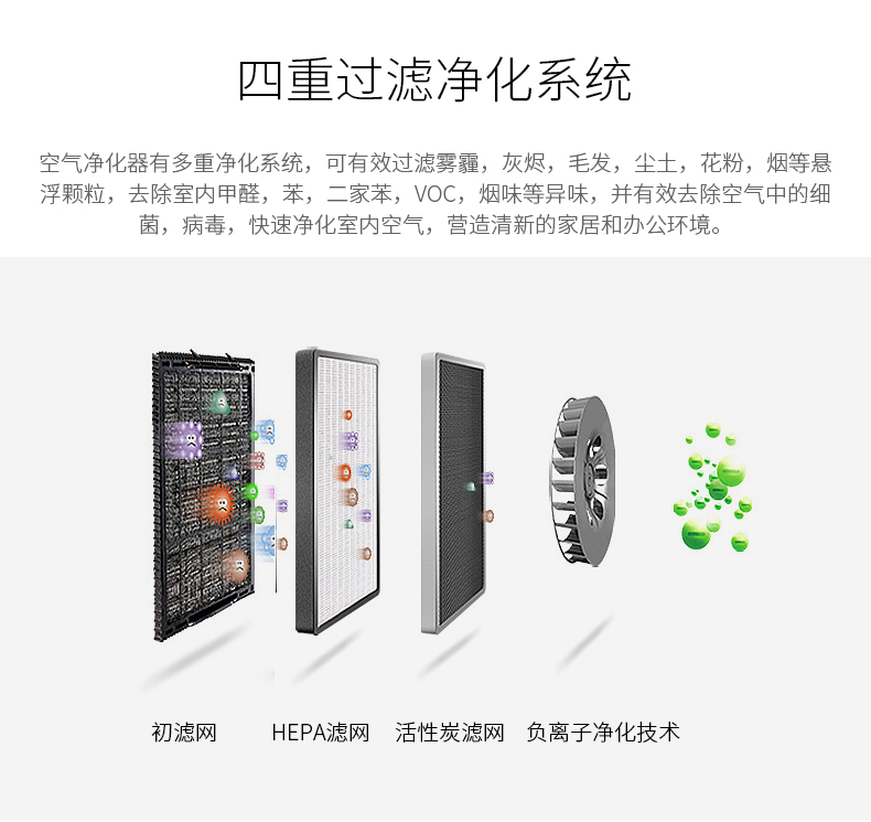 初级滤网+HEPA+活性炭+冷触媒+负离子