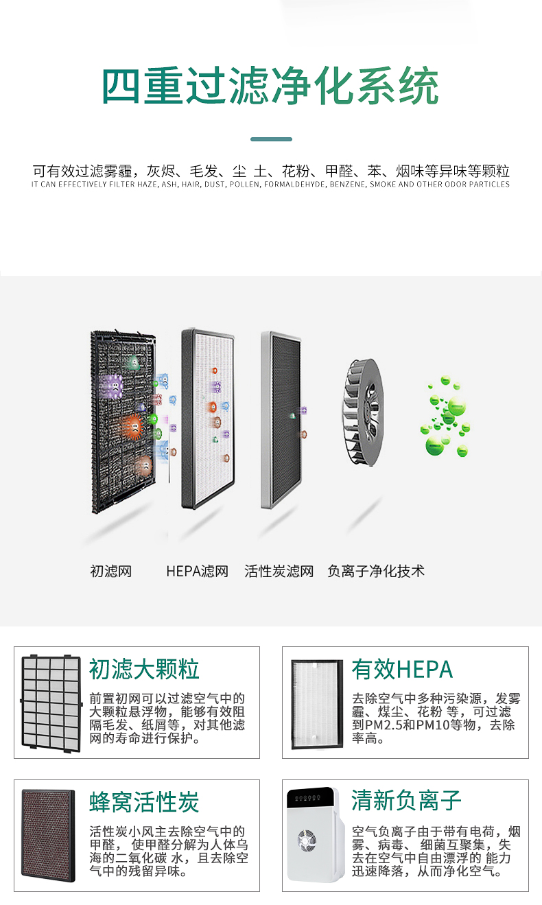 HEPA+蜂窝活性炭+冷触媒+杀菌过滤纤维棉