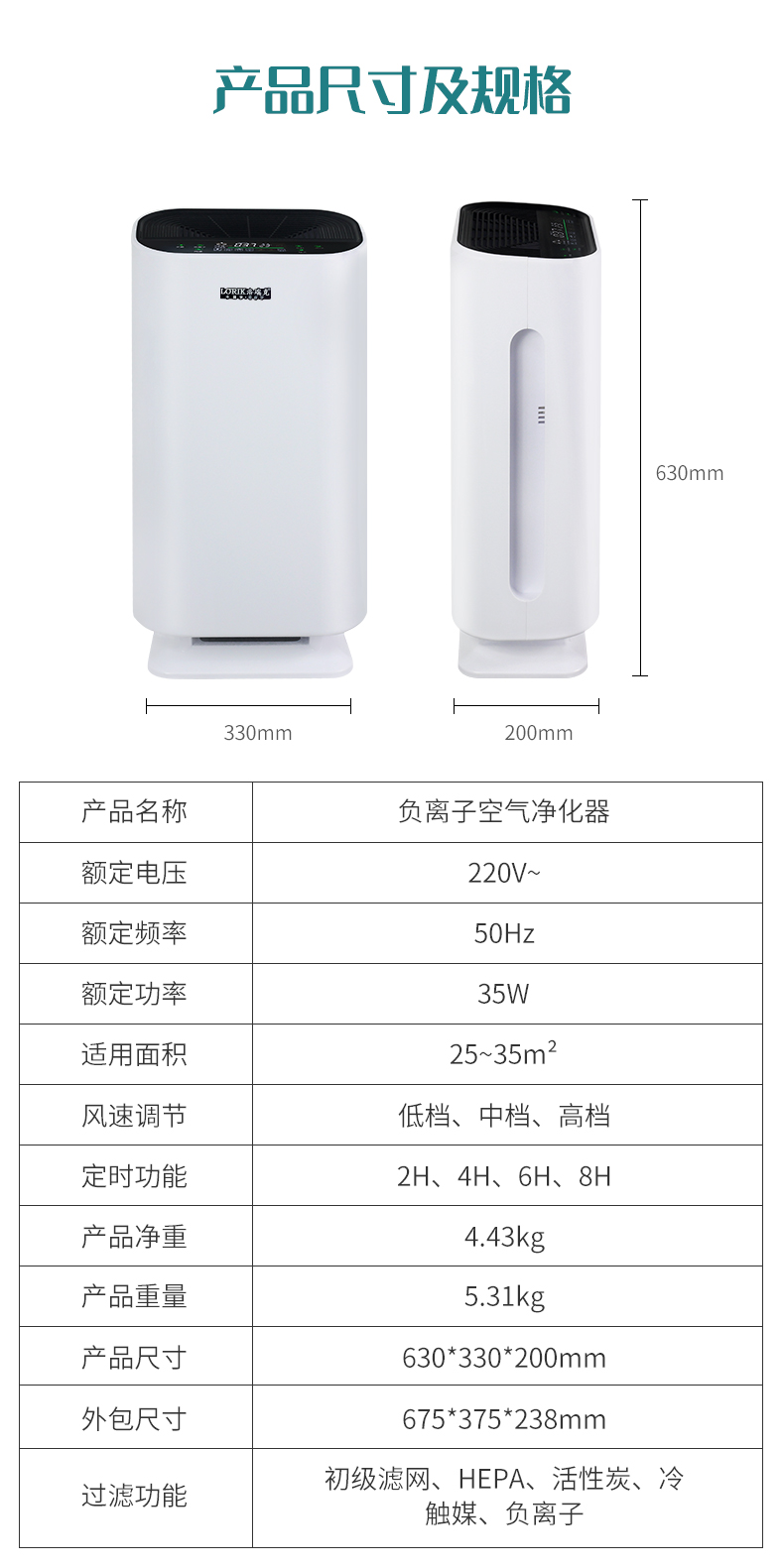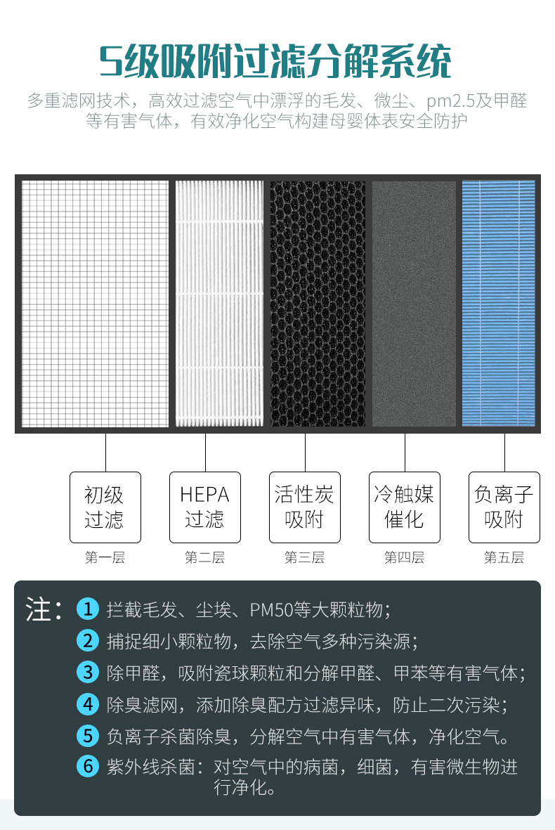 初级滤网+HEPA+活性炭+冷触媒+负离子