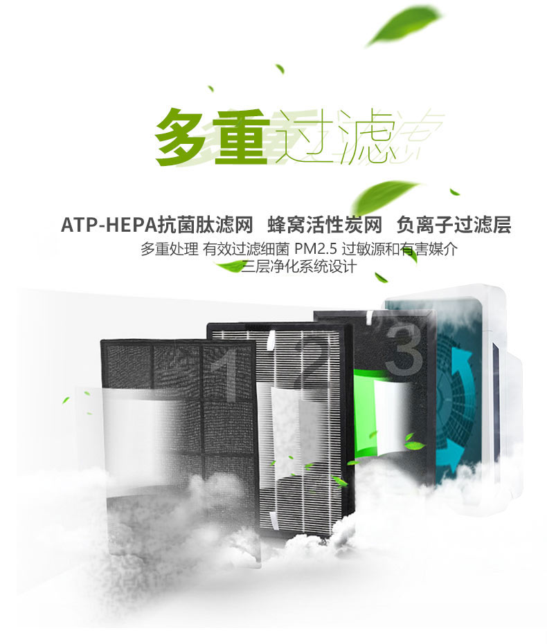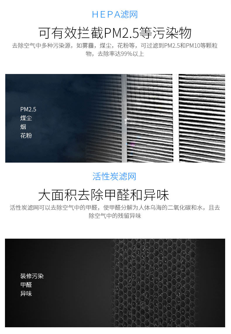 蜂窝活性炭滤网+负离子释放+HEPA技术