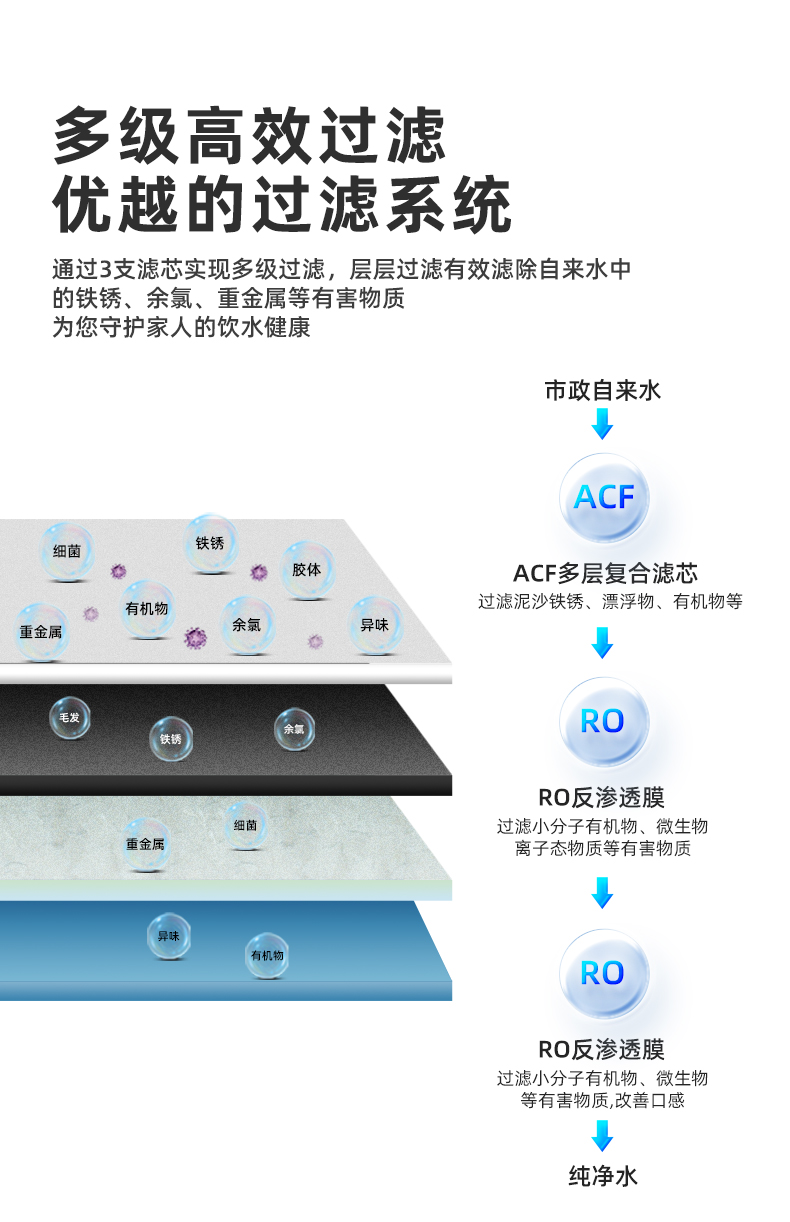 pp棉+颗粒活性碳+后置活性炭+pp棉+反渗透ro膜